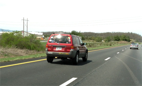A red SUV passing us caught the corner of my eye, and I don’t know why but it made me glance aside. The sight put into low gear the reverie I had been enjoying about the weekend ahead. The lone driver was a young man and he was driving with no hands. He was preoccupied typing a text or email message on his mobile device while he passed in the fast lane. You could say that neither the road ahead nor the vehicles he burned past were at the front of his mind. Lucinda snapped a photo with her iPAD.