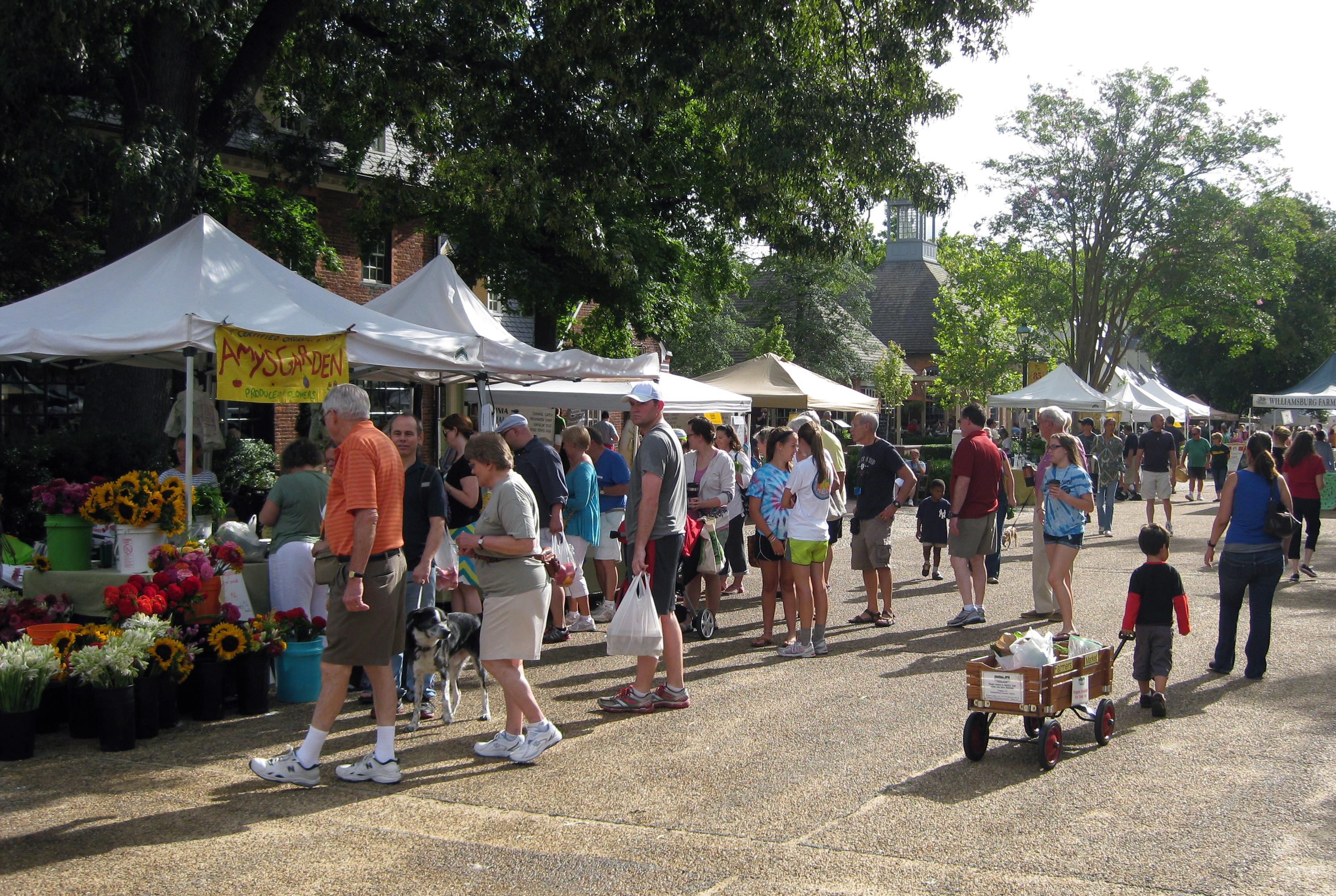 Colonial Williamsburg staff in 18th Century garb draw your eye and a fife and drum band may turn your ear, but never on a Saturday morning when a farmer’s market takes over Duke of Gloucester Street. The ancient street is lined with white canvas harboring wooden tables where local produce is on display—fruit, vegetables, eggs, and meat from Peninsula farms; seafood from the Chesapeake Bay; honey from county apiaries; homemade loaves and pies from local ovens. At the center of a vortex of food gathering, a group of Master Gardeners sit like sage Indian chiefs under an awning where they offer advice for people like me who grow their own.