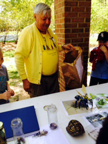 One of our master naturalist friends, Clyde, is also a zookeeper, but not the kind I ever imagined. He was more radical than Durrell when he created a portable zoo that could be taken to children in their classrooms and to public parks. The critters were collected in his neighborhood or the local churchyard under state collection and exhibition permits. Reptiles and amphibians were returned to where they were caught a few days earlier, while other creatures were cared for at home. His zoo is transported in shopping bags in his car trunk and, although none of the big predators and venomous snakes beloved by children can be included, his small critters have been tremendous hits. Since it was launched in 2007, he has entertained and educated over 13,000 children and adults across five school districts in south-east Virginia.