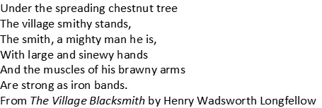 The chestnut has been called “the perfect tree” because it can produce a huge harvest of nutritious nuts and wonderful timber that won’t rot, and it is ornamental. The strong arms of the hard-working blacksmith are like the bows of the productive tree, and his virtuous life like the generosity of the forest giant. The loss was said to bring tears to the eyes of old-timers who treasured and depended on chestnuts, but have they gone forever?